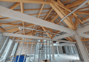 La construction s’inscrit dans une démarche environnementale respectueuse avec l’emploi de matériaux résistants issus de filières durables, la conservation des arbres existants dans le parc de la mairie, et le choix de solutions énergétiques sobres assurant un confort d’usage, telles qu’un système de chauffage par pompe à chaleur air/air et une ventilation double flux.